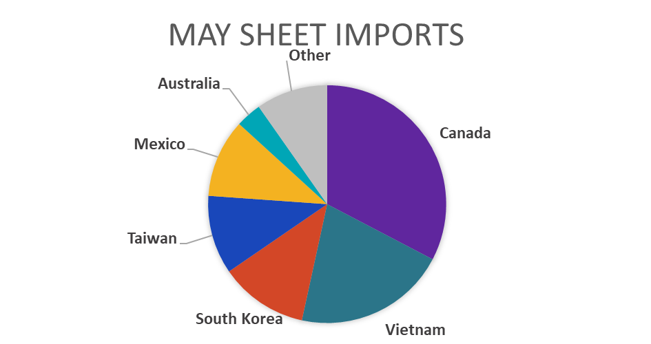 April Projection – Sheet 987k (up 31k MoM); Tube 376k (down 60k MoM)