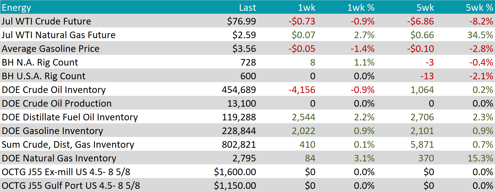 The Baker Hughes North American rig count gained 8 rigs, bringing the total count to 728 rigs, climbing off of recent lows. Meanwhile, the US count remained unchanged at 600, staying at its lowest level since January 2022.