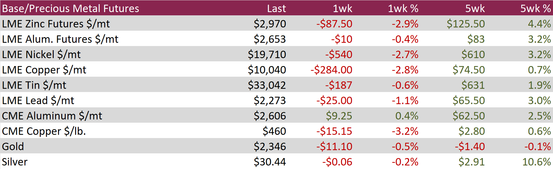 Copper dropped by $15.15 or -3.2% to $460, as lackluster near-term demand overshadowed the speculative momentum that had previously fueled the rally. Unexpected contraction in manufacturing activity, highlighted weak domestic demand for industrial goods and exacerbated concerns of oversupply. This was further intensified as increased scrap usage boosted refiner output, leading to higher inventories and pushing the price for delivery from bonded warehouses below LME prices for the first time since 2017, signaling low physical demand. Despite these challenges, speculative interest has kept copper prices 20% higher year-to-date, buoyed by its critical role in electrification projects like grid-scale energy storage and data-center infrastructure. This speculative interest aligns with heightened expectations for Chinese industrial activity following Beijing’s significant economic stimulus measures. Concurrently, the high costs associated with new mining developments have led companies to pursue mergers and acquisitions rather than new projects, affecting the supply side dynamics.