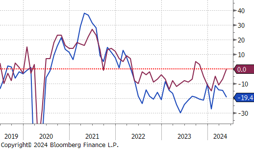 The FED Manufacturing survey provided opposing signals. Dallas printed down to -19.4, below an expected uptick at -12.1. Richmond, however, came in above expectations, printing 0, versus and expected -7. Now that we have all the Fed surveys, our expectation is that the ISM Manufacturing PMI for next week would tick higher but remain in slightly contraction territory, matching overall market expectations.