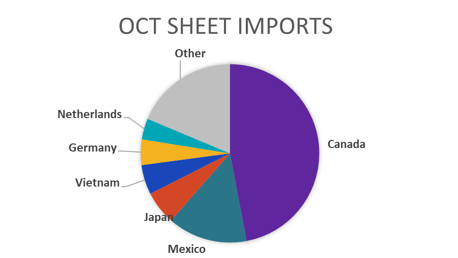 October Projection – Sheet 700k (down 81k MoM); Tube 436k (up 87k MoM)