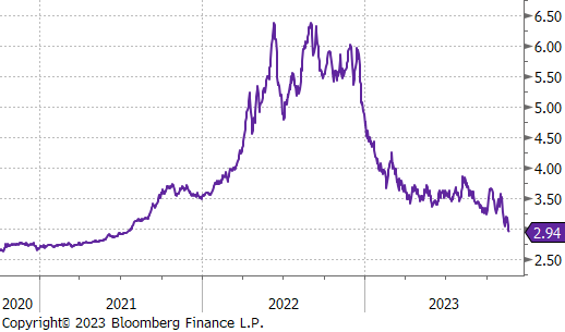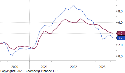 CPI came in below the market forecasts, with CPI YoY falling to 3.2%, MoM Core CPI (ex. food and energy) decreasing to 0.2% from September’s print of a 0.3% increase, and the YoY Core CPI slowing to a rate of 4%, marking the slowest increase since September 2021. This was a welcome sign of continued relief from rising prices after recent indicators and reports have been pointing to sticky prices, as well as bolstering views that the Fed’s rate hikes are ending.