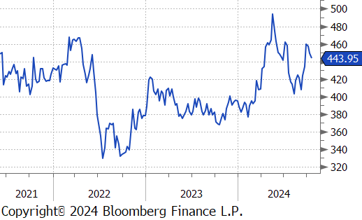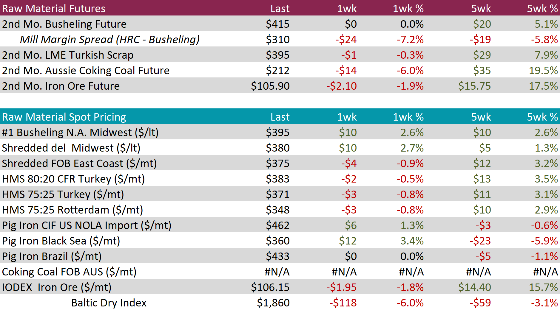 The 2nd month busheling future remained unchanged at $415, marking the fifth consecutive week of holding steady.