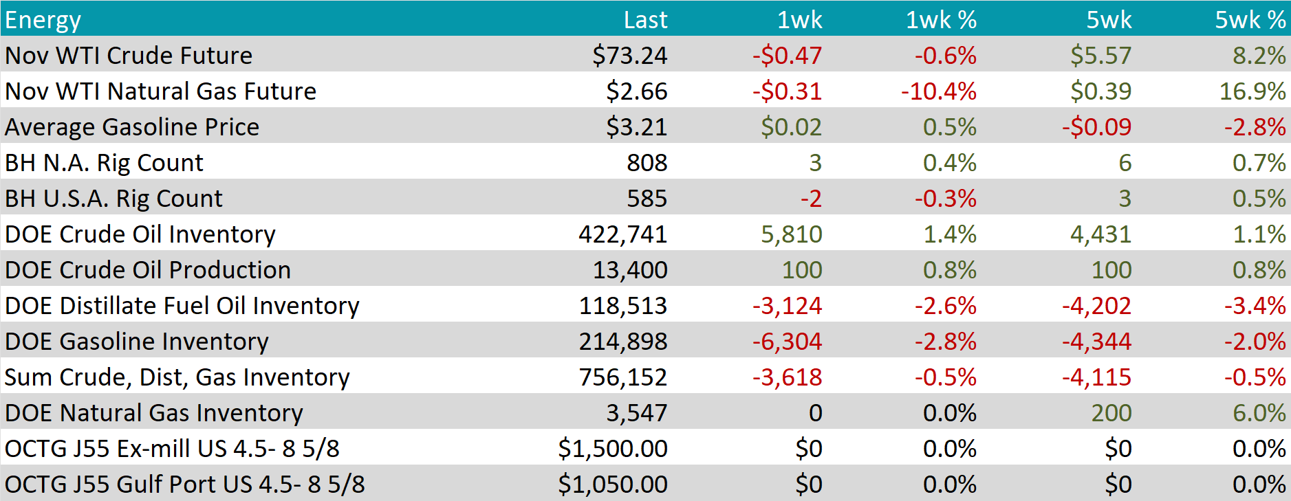 The Baker Hughes North American rig count added 3 rigs, bringing the total count to 808 rigs, whereas the US rig count reduced by 2 rigs, bringing the total count to 585 rigs.