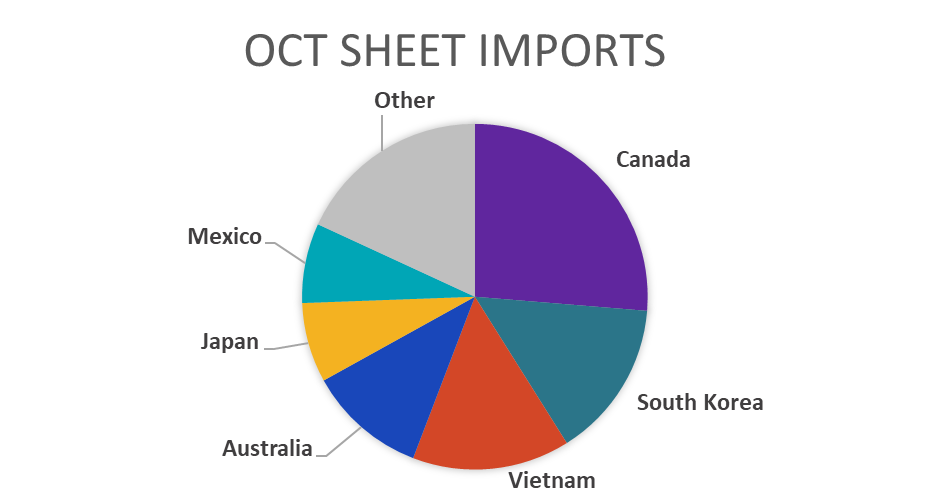 October Projection – Sheet 949k (up 74k MoM); Tube 332k (down 62k MoM)