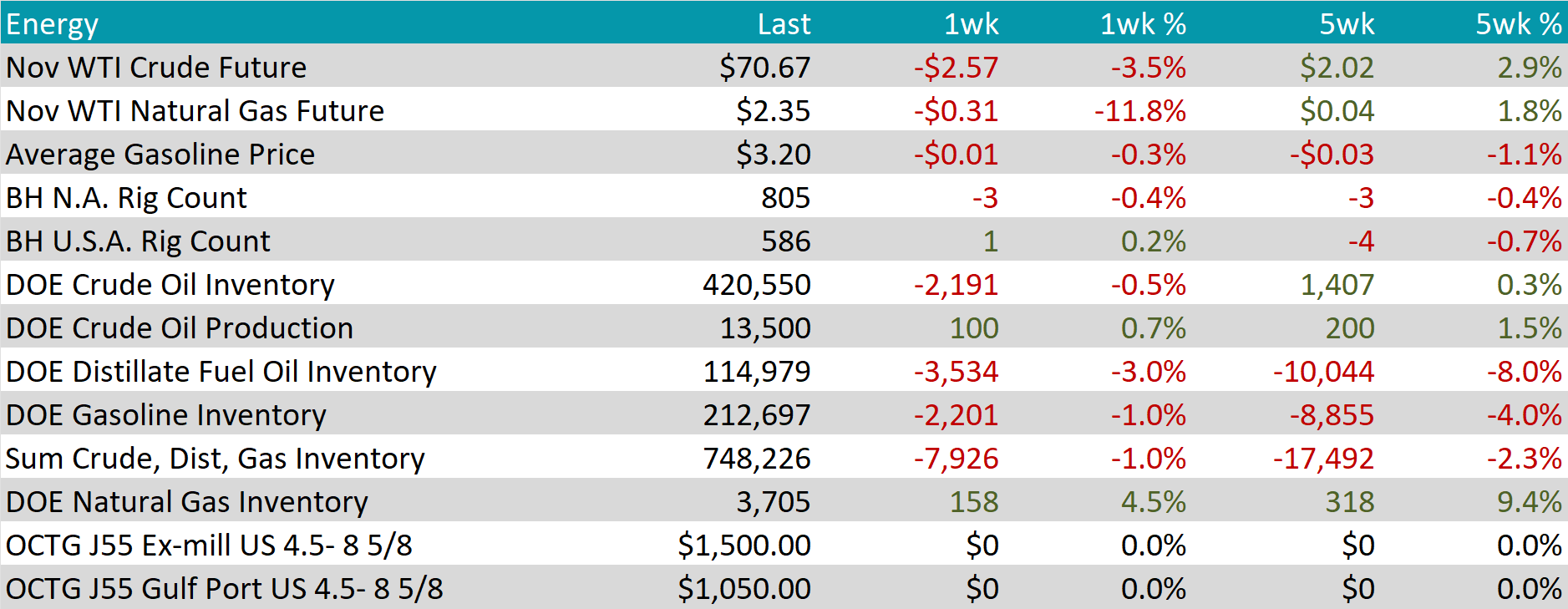 The Baker Hughes North American rig count reduced by 3 rigs, bringing the total count to 805 rigs. At the same time, the US rig count added 1 rig, bringing the total count to 586 rigs.