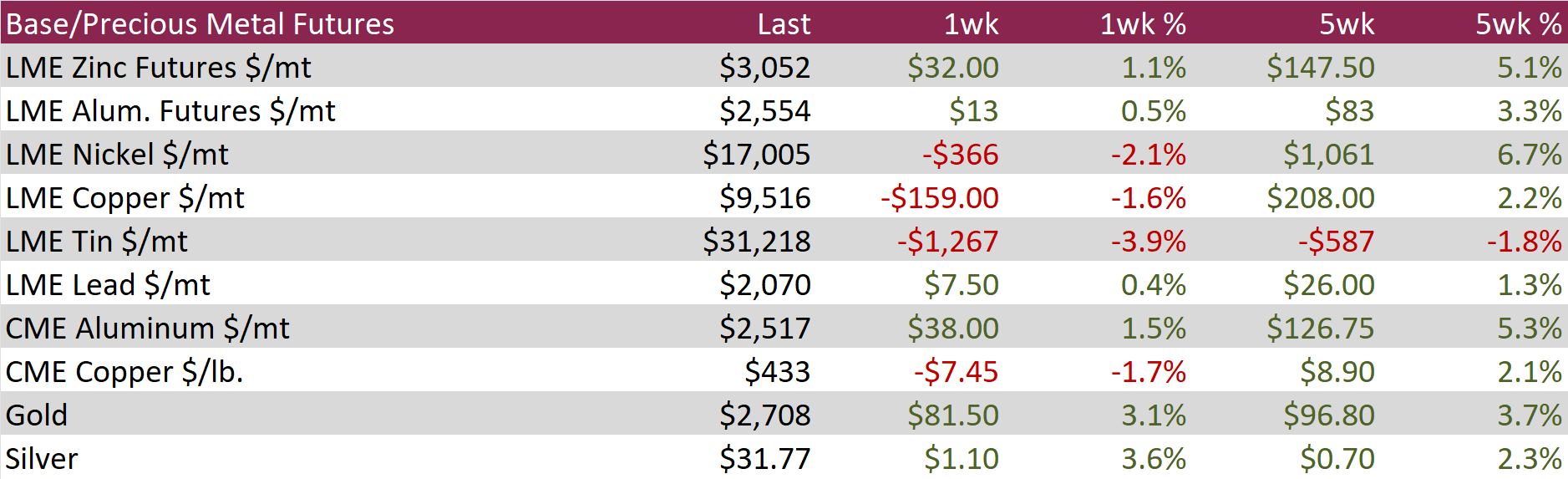 Tandem products were mixed, with CRC holding steady while HDG dropped by $30, resulting in the HDG – HRC differential to decline by $15 or -8.6% to $160.