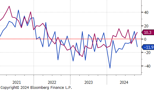 The first batch of September housing data printed lower, but mostly came in line with expectations (when accounting for the potential impact of Hurricane Helene). Housing starts printed down -0.5%, just below the expected -0.4%, while Building permits were down -2.9% versus the expected -0.7% move. On the permits side, the entire “miss” versus expectations can be explained by the -50k move in the South region.