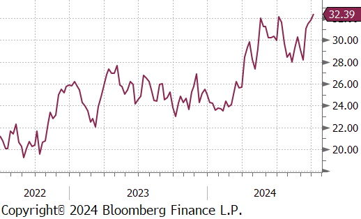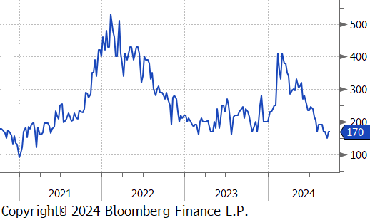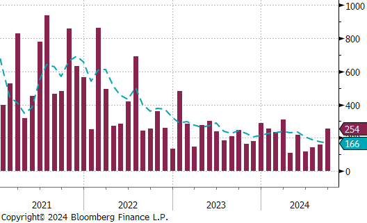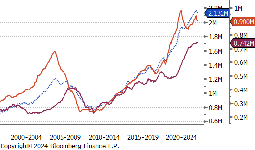all highlight the fact that elevated borrowing costs and election uncertainty have stood in the way of a recovery in consumption from the sector. The FED will clearly continue the cutting cycle from here, but this week’s labor market data puts to question whether it will be as rapid as the market was pricing.