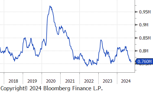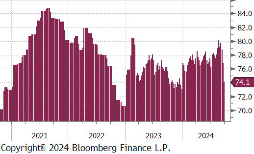 Mill production notably scaled back further, with capacity utilization ticking down by -2.8% to 74.1%, bringing raw steel production down to 1.646m net tons, reaching the lowest level since December 2022.