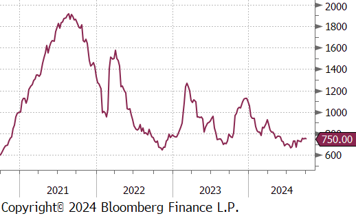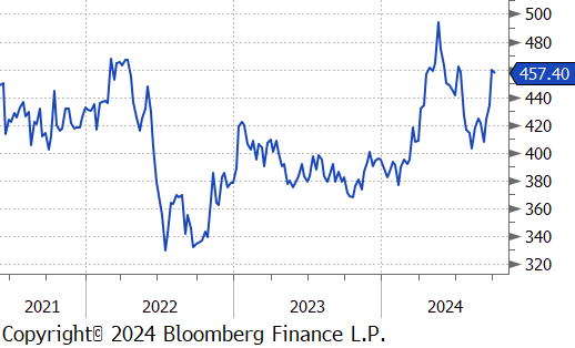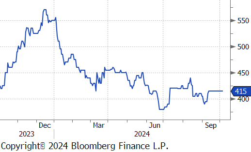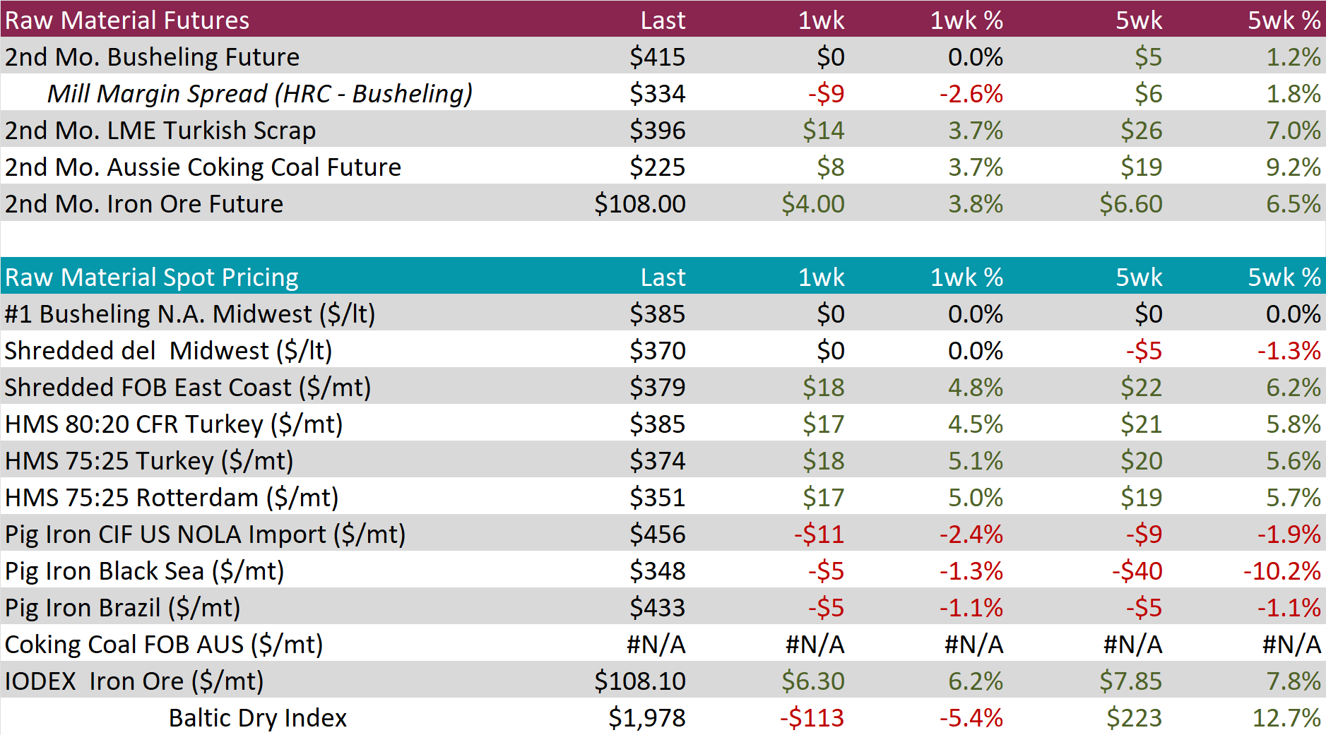 The busheling 2nd month future continued to stay at $415, bringing the five-week price change to be up by $5 or 1.2%.
