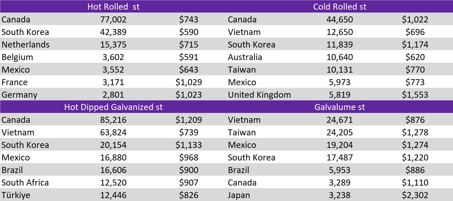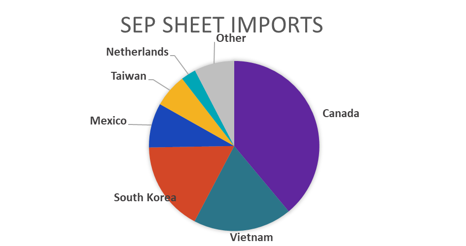 • Imports remain elevated going into Q4, to get material ahead of trade case decisions, against expectations.