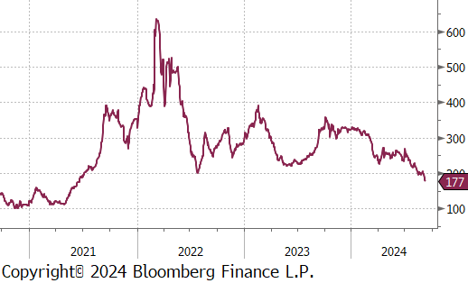 The Aussie coking coal 2nd month future dropped by $29 or -14.1% to $177, hitting the lowest level since June 2021.