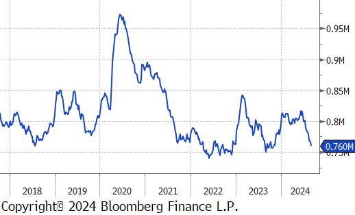 Mill production edged lower, but remains on the more elevated range, with capacity utilization ticking down by 1.0% to 79.2%, bringing raw steel production down to 1.760m net tons.
