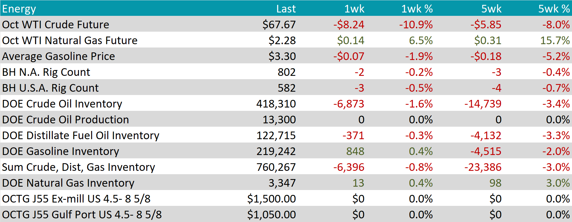 The aggregate inventory level continued to decline, this time falling by -0.8%, marking the seventh consecutive week of decreases.