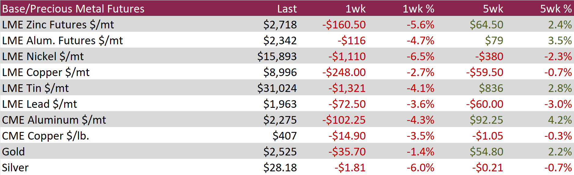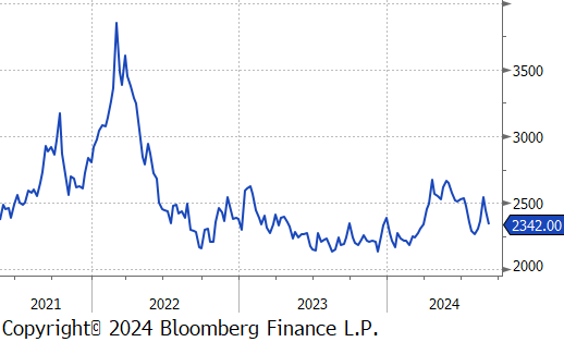 Aluminum futures dropped by $116 or -4.7% to $2,342, continuing their descent from the two-month high of $2,550 reached on August 27th. This decline is part of a broader weakness in base metals, driven largely by decreasing demand in China. The downturn was underscored by China’s official manufacturing PMI, which unexpectedly fell to 49.1 in August, indicating the most significant contraction in factory activity this year and further weakening the demand outlook. Additionally, Beijing’s reluctance to provide fiscal support to traditional manufacturing sectors, opting instead to invest in emerging technologies, has contributed to the negative market sentiment. Concurrently, an increase in aluminum supply in China—boosted by improved rainfall in Yunnan enhancing hydroelectric power availability—has placed additional downward pressure on prices.