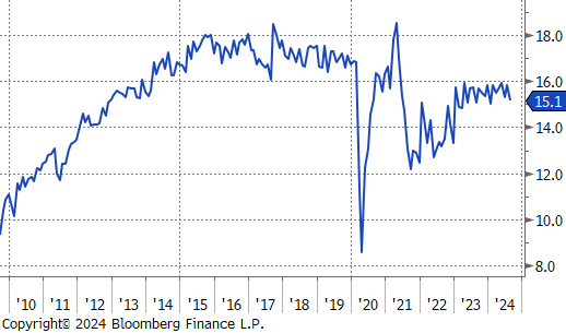 Auto Sales (SAAR), came in at a 15.1M in August, below the expectation of 15.4M. Ongoing affordability issues continue to stand in the way of the sector pushing back up to pre-pandemic levels.