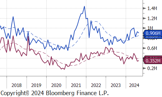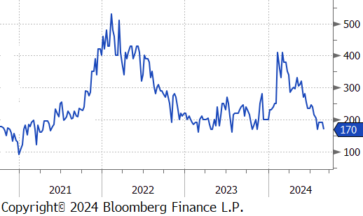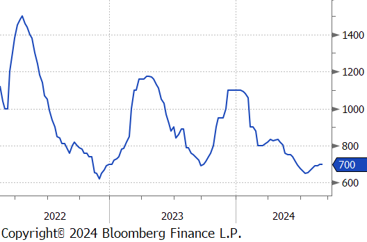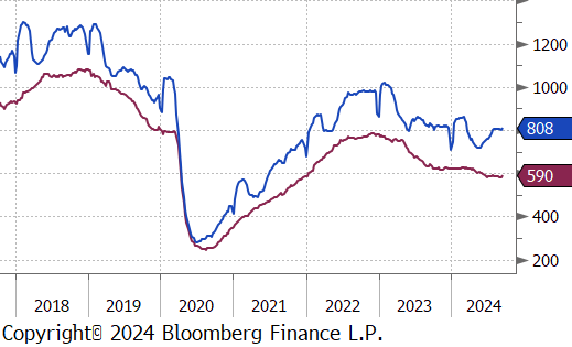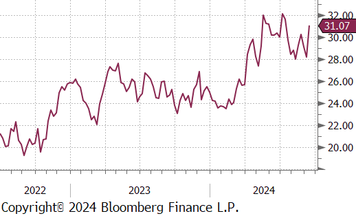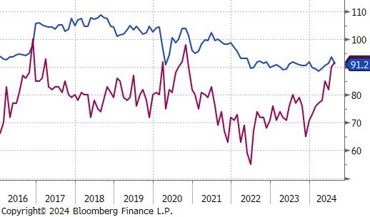 Additionally, August’s NFIB Small Business Optimism Index dropped to 91.2, missing the expected slight decline to 93.6. One of the main drivers for the downtick was the Uncertainty Index increasing, which reflects the ongoing uncertainty related to the upcoming election, which always tends to spike during presidential elections.