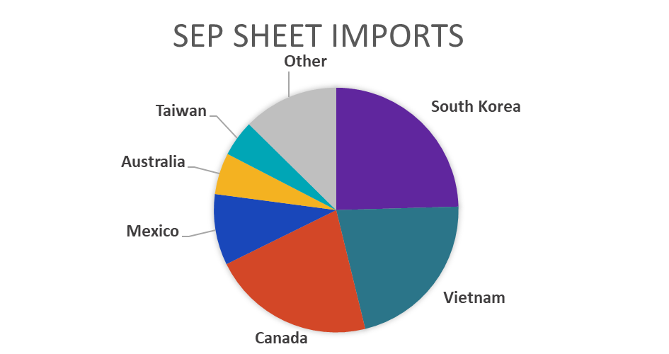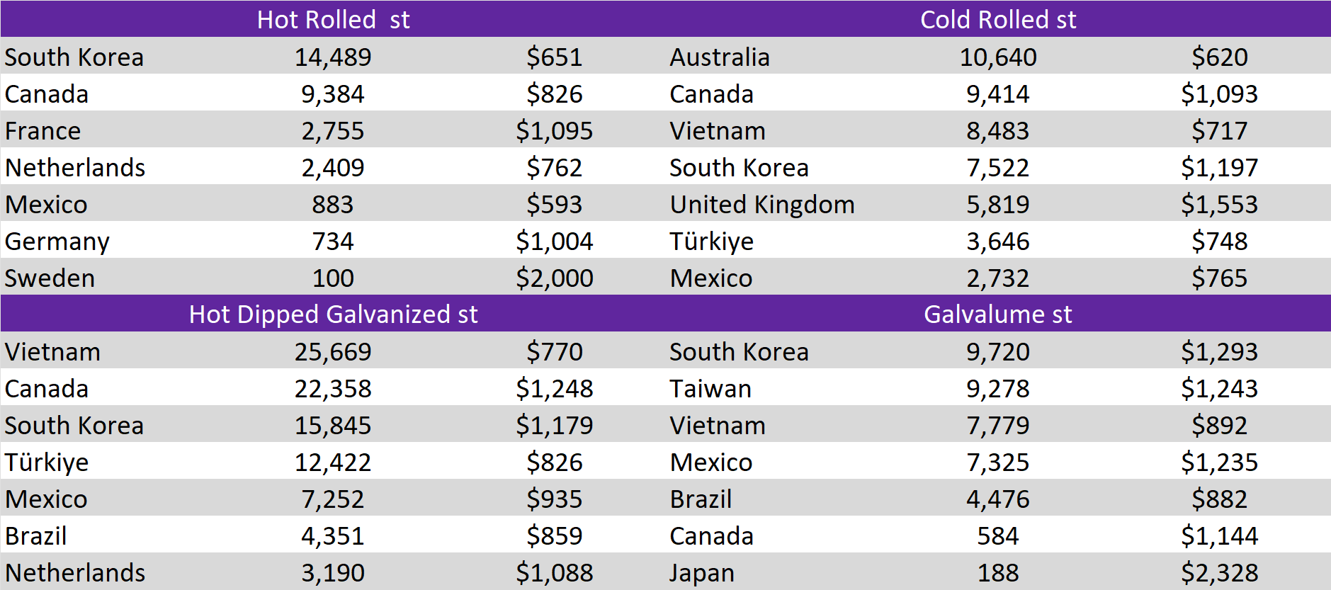 The ten countries that have been noted in the trade cases make up approximately 80% of the imported corrosion resistant steel market and are currently on track to bring in around 3m net tons of corrosion resistant steel for this year alone.