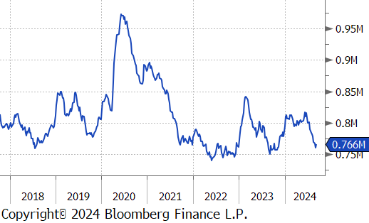 Mill production continued to remain on the higher end of its recent range, with capacity utilization ticking up by 0.6% to 79.8%, bringing raw steel production up to 1.772m net tons.