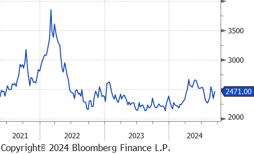 The Baltic Dry Index edged up by $8 or 0.4% to $1,927, building off last weeks gain and reaching the highest level since July.