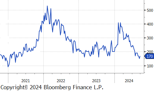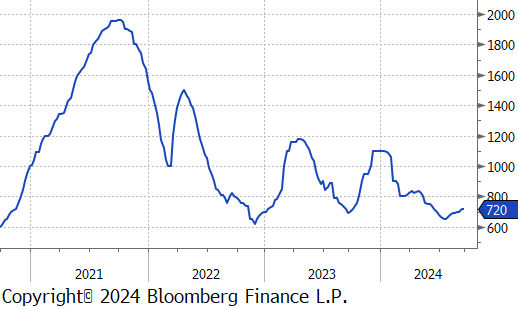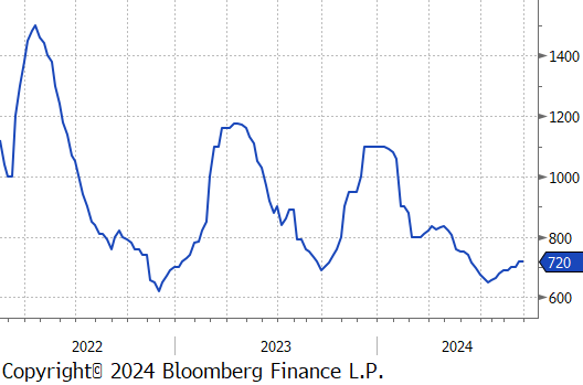 New home sales in August were down 4.7% compared to July but came in at 716k annualized homes sold, better than the expected 700k. Pending home sales rose 0.6% in August, below the expected 1% increase. Inventory data showed improvement, and initial data suggests that the recent decline in mortgage rates has led to a surge in refinancing, while mortgage applications saw another 11% weekly increase, up from last weeks impressive 14.2% surge.