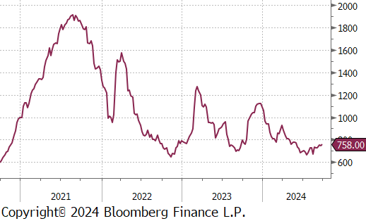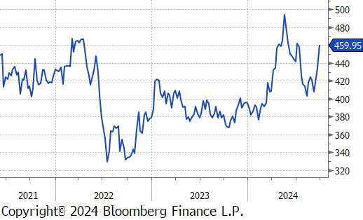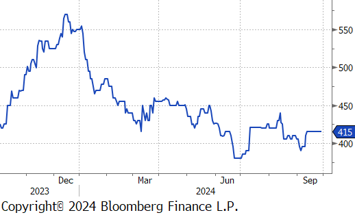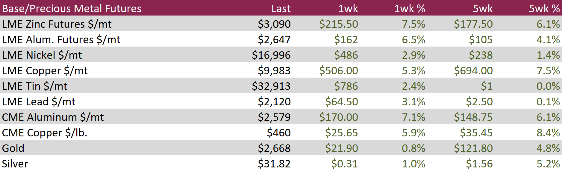 The busheling 2nd month future remained unchanged at $415, holding steady for the third consecutive week, bringing the five-week price change to be up by $10 or 2.5%.