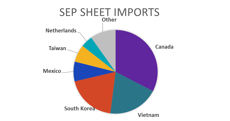 • Imports remain elevated going into Q4, to get material ahead of trade case decisions, against expectations.