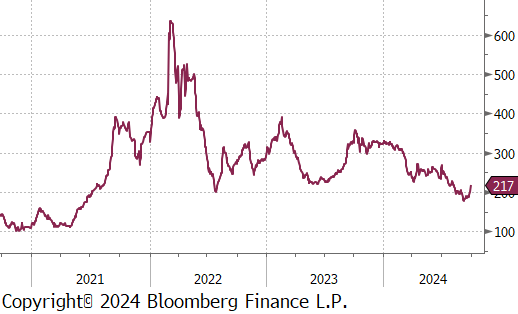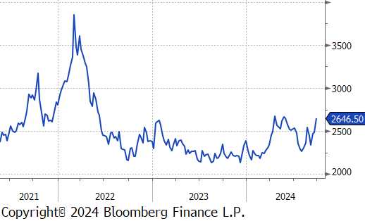 Aluminum futures soared by $162 or 6.5% to $2,647. This occurred amid a developing squeeze in the aluminum market at the LME, which has drawn significant attention ahead of LME week. This squeeze driven by controversial practices from warehouse operator Istim Metals, which controls around 50% of the exchange’s metal storage. Istim’s fee increases, and stock management have created long queues for metal withdrawals, frustrating traders and distorting prices. The situation, involving key players like Trafigura, could significantly impact global aluminum markets. This squeeze underscores ongoing concerns about the influence of private warehouse operators on the LME’s market dynamics.