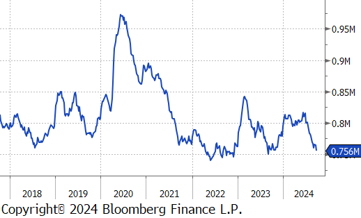 August Census Sheet 918k (down 12k MoM); Tube 389k (up 51k MoM)