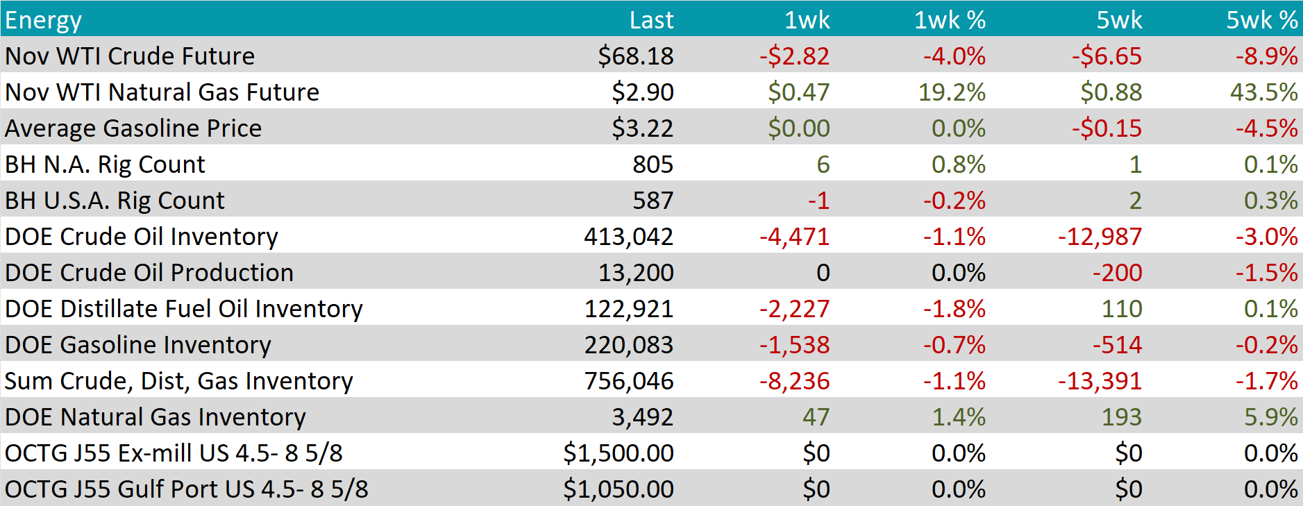 The Baker Hughes North American rig count added 6 rigs, bringing the total count to 805 rigs, while the US rig count declined by 1 rigs, bringing the total count to 587 rigs.