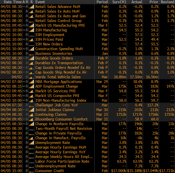The overall downtrend in European PMIs continued in March, culminating in the Eurozone PMI falling into contraction for the first time since September 2016. Keep an eye on the German and Chinese PMI printings in the next couple of months. The two countries are currently trending in opposite directions, but the stabilization in China, a barometer for global demand, should bode well for Germany’s export driven manufacturing sector.