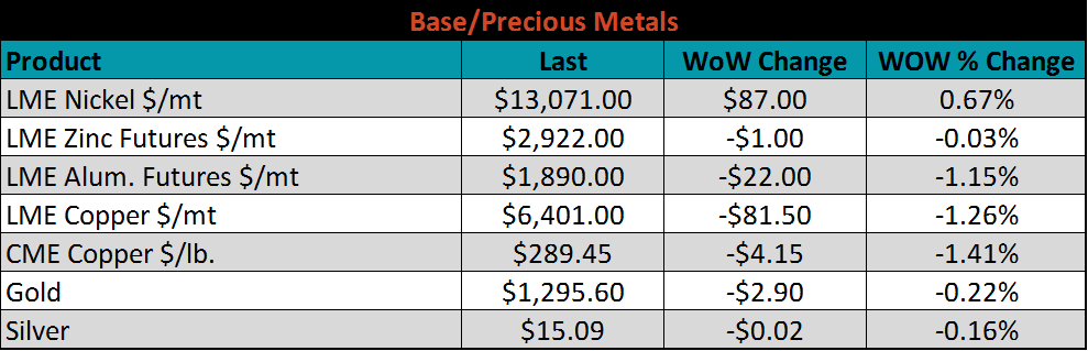 SBB Platt’s HRC, CRC and HDG WoW pricing is below. Midwest HRC and CRC prices are slightly higher, while HDG prices were slightly lower. Brazilian Domestic CRC and HDG prices decreased dramatically, down 8.5% and 6%, respectively.