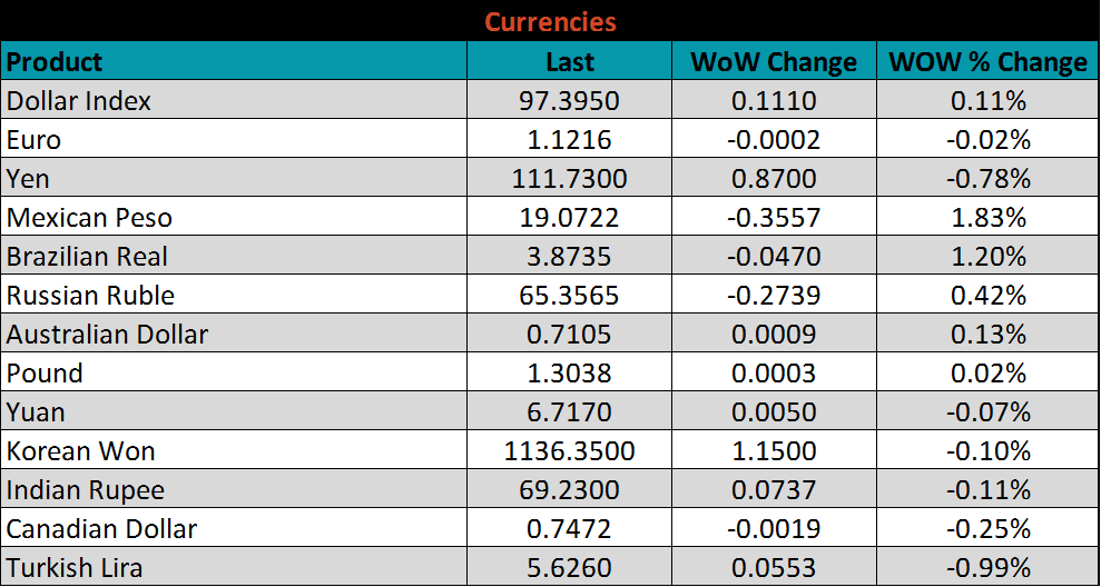 The U.S. 10-year treasury yield was up nine basis points closing the week at 2.5%. The German 10-year yield was up eight basis points and is now back above zero at 0.01%. The Japanese 10-year yield also showed signs of improvement, up five basis points to -0.03%. While rates moved higher over the last week, they remain at historically low levels. The Federal Reserve continues to maintain its pledge to remain “patient” regarding further rate increases, which will stimulate the economy and steel prices.