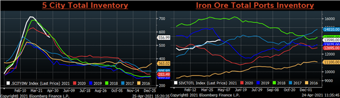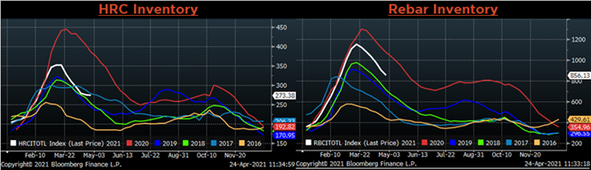 Raw material prices were mixed, June iron ore futures gained 6.2% while East Coast shredded was down slightly, just 0.3%.