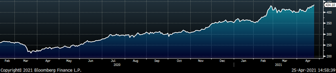Below is April import license data through April 20, 2021.