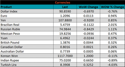 Below is the Midwest HRC price vs. each listed country’s export price using pricing from SBB Platts. We have adjusted each export price to include any tariff or transportation cost to get a comparable delivered price. All the watched differentials increased again this week, as the U.S. price continued to push higher than global prices.