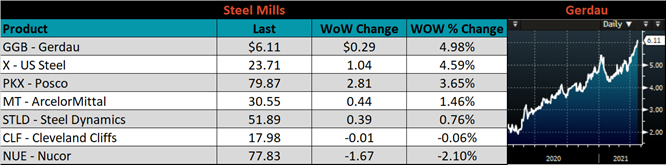 The spot price for HRC continues to increase with limited transactions occurring at elevated levels, while mills remain disciplined on maintaining 9-week lead times and not overbooking contracts further out. Much like in recent weeks, any spot material that surfaces is sold quickly and at new record levels. We are currently in the middle of an 8-month rally, and the most troubling part for anyone who is short steel, physically or financially, is that it remains entirely unclear when mills will be caught up. More recently, multiple mills have started forecasting that they will be reinstating contract minimums, to make their backlogs more manageable. Additionally, imports are coming at elevated levels, but these levels below expectations and are insufficient to meaningfully impact the structural shortage. In this week’s report we will dig deeper into why we are starting to believe dynamics in the steel market are not going back to the way they were in the past.