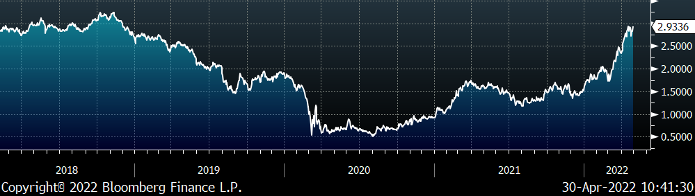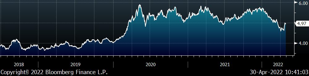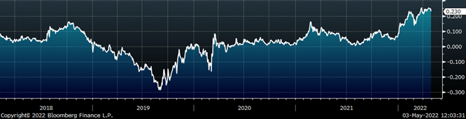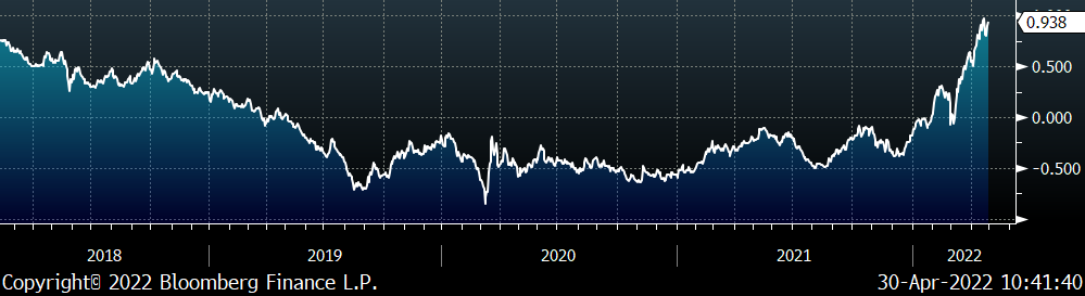 Prices have softened since the last time we looked at this chart, however, each of them remains above pre-invasion levels which effectively raises the floor for HRC prices. Even if they continue to decline, there have been significant supply disruption/logistics issues linked to moving these raw materials from where they are to where they need to be. The current HRC curve is pricing in a rapid normalization of raw materials which has yet to materialize. Significant upside risks to that scenario are both further disruption in these markets and global demand continuing to increase for raw materials as China implements broad changes to the environmental impact of its steel industry. Backwardation in the curve presents an opportunity to hedge that risk by fixing your steel price for future tons at a sharp discount to current spot levels.