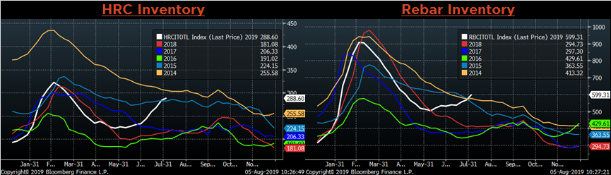 July flat rolled import license data is forecasting an increase to 753k, up 50k MoM.