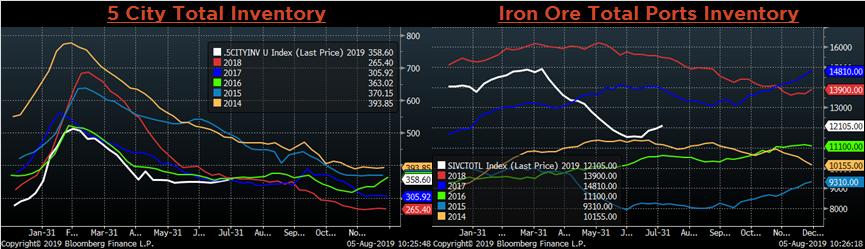 China’s official PMI and Caixan Manufacturing PMIs both printed higher in July at 49.7 and 49.9, respectively.
