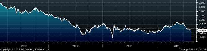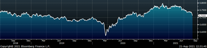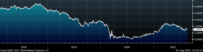 This month, the index shifted lower in July to 1.15 million tons, which is the lowest level since the beginning of our current rally and just below the 5-year average. The main driver of this month’s move came from a larger decrease in shipments, as opposed to a slight increase in inventories, which remain 24% below their 10-year historical average. Current commentary around service center inventory levels is that most are comfortable carrying lower inventories until prices subside, however, this could lead to additional upside price risk if shipments remain elevated while the mills go through their planned outages. Next week has been circled for months by service centers, OEMs, and mills, as contracts were largely placed on hold until after the SMU conference, which concludes on Wednesday, August 25th. Leading up to this point in negotiations, there has been discipline from both sides as end-users are reluctant to do any speculative restocking at these prices, and with the 2018-19 price decline fresh in everyone’s mind. With that said, there has been significant consolidation among mills and the pandemic wreaked havoc on established supply chains. With all of this in mind, we believe there will be a premium for reliable availability in all 2022 contracts and the best opportunity for next year remains in the futures curve, where there is a 30% discount to current spot prices.