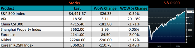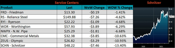 Global flat rolled indexes were mixed. The TSI Platts Midwest HRC price was up another 0.4%, while the Chinese spot HRC price was down 2.2%.