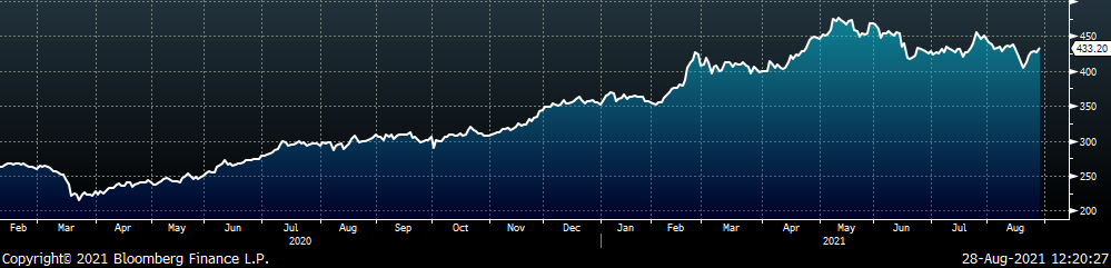 Since the beginning of the rally, sparce levels of imports have steady increased and now sheet imports have surpassed 1 million short tons in July, with August expected to match those levels with an ever-expanding global price differential as a backdrop. Further, anecdotal evidence suggests import levels should remain elevated well into 1Q22 as a lack of commitment from the mills on contracts has pushed buyers to look abroad. Additionally, mill profitability is at astronomical levels with raw materials stalling out and plateauing below 2008 price levels. We also anticipate the upcoming mill outages will put further downward pressure on scrap prices going into 4Q21. Finally, steel buyer frustration has intensified over the last six months, as downward pressure from these factors grew, while the price continued to rise, which has caused an aversion towards buying any speculative material, today. The combination of these dynamics appears to be slowing momentum and causing a consolidation of HRC prices below the $2,000 level, which seemed inevitable only a few weeks ago. However, slowing momentum and increasing downside risks don’t necessarily lead to lower pricing in the short term. In the coming weeks, a large amount of production is coming offline due to planned mill outages, while recent pockets of spot material have all but dried up. Buyers, that did not take advantage of Q3 import offers from earlier this summer or purchase any tons from the recent round of spot availability (while under the impression the market was turning around), who need material right now have nowhere to turn. This will likely keep prices elevated throughout the end of the year.