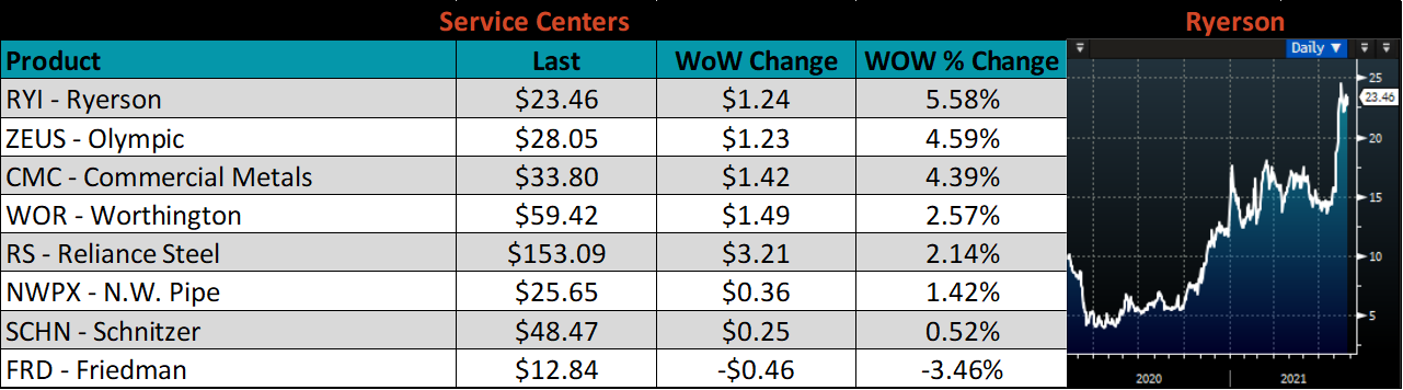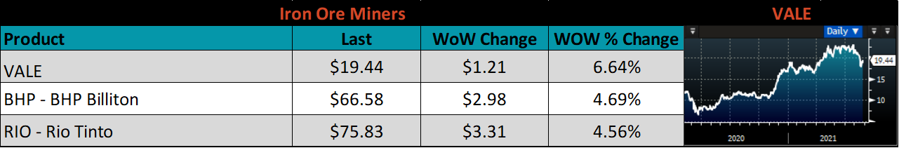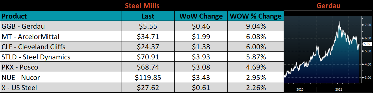 The CME Midwest HRC futures curve is below with last Friday’s settlements in white. Last week, the entire curve shifted higher, most significantly in 4Q21, each expiration saw a record high to end a week of upward momentum.