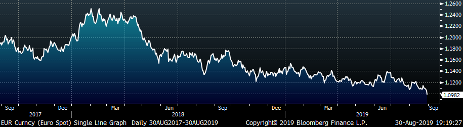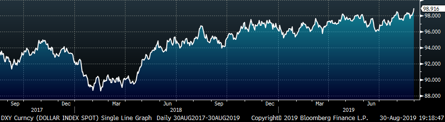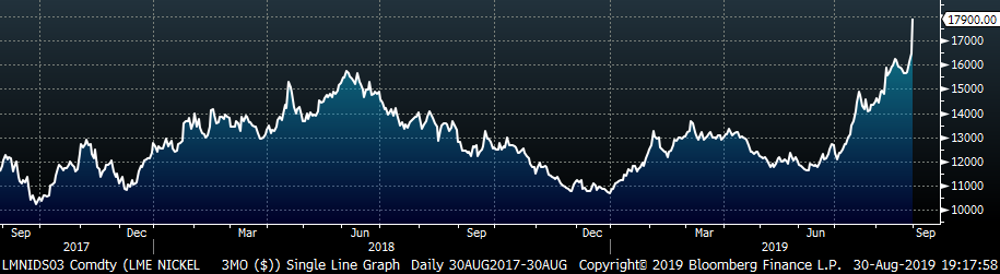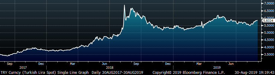 Overall steel market sentiment has been weak over the last month. Pricing outlook, expressed by many steel buyers, indicates expectations of lower spot prices over the next few months. This is driven by their reluctance to purchase material until it is absolutely needed. Inventory levels of end users continue to decline, and uncertainty surrounding the US/China trade war is delaying large capital spending plans. This has been the prevailing buyer sentiment over the last year. It is also apparent in the futures market, which gauges expectations of future spot pricing. The November HRC future has declined over $70/st since the end of July.
