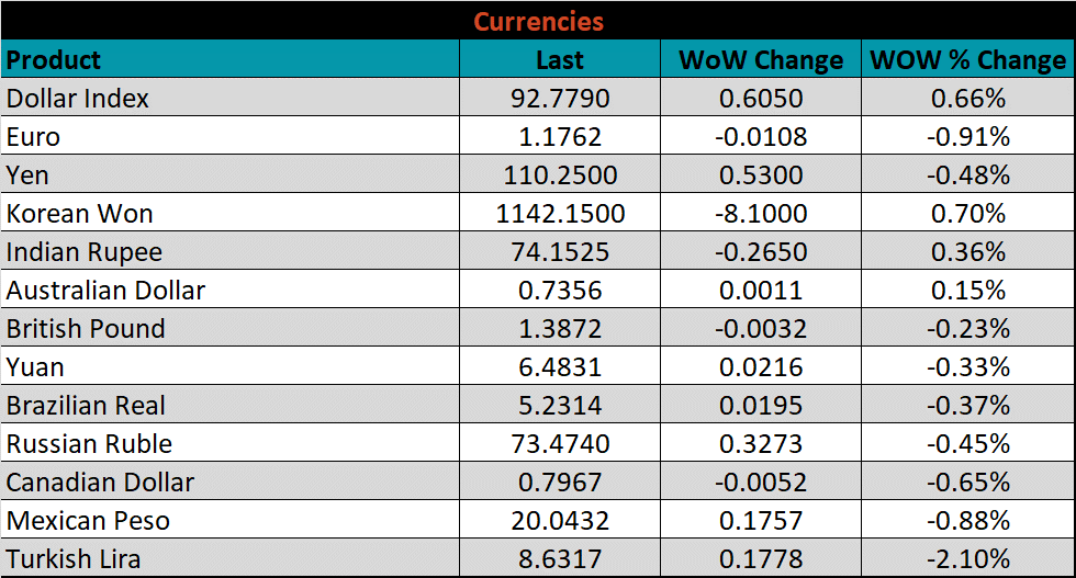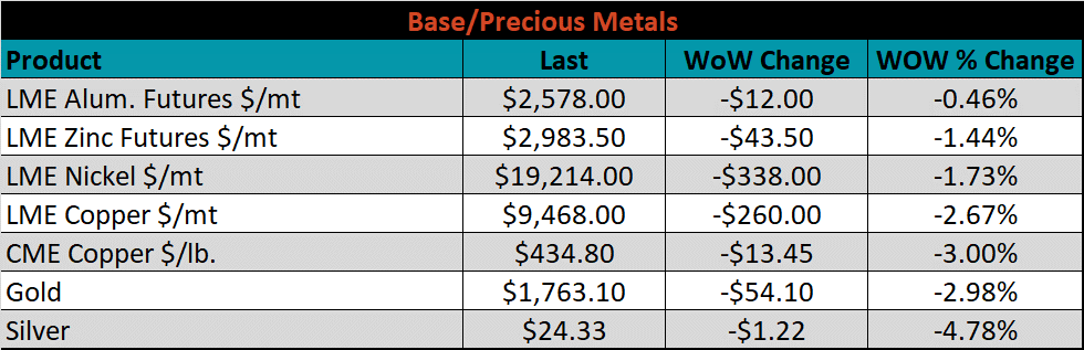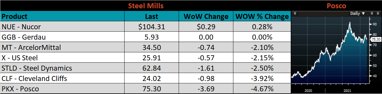 SBB Platt’s HRC, CRC and HDG pricing is below. The Midwest HRC, CRC, & HDG prices were up, 1.6%, 1% and 0.8%, respectively. Globally, the Chinese export CRC price was up 10.4%.