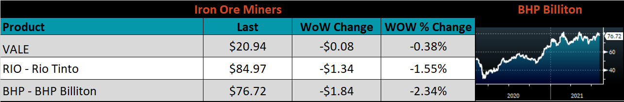 Raw material prices were mixed, Brazilian pig iron was down 10.6%, while Aussie coking coal rose 1.8%.