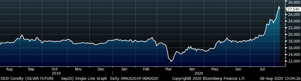 Base and precious metal future were mixed. Silver, was up another 13.7%, while CME Copper was down another 2.6%.
