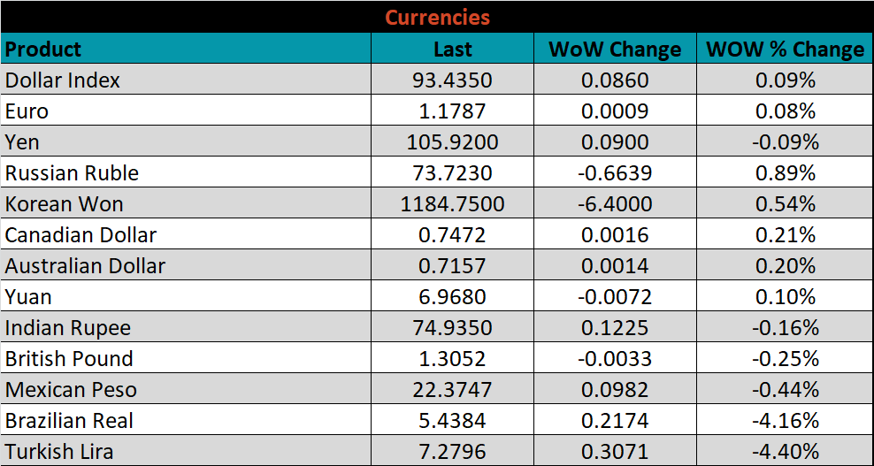 SBB Platt’s HRC, CRC and HDG pricing is below. The Midwest HDG, CRC, and HRC prices were up 3.3%, 1.1% and 0.9%, respectively.  Globally, the Turkish export HRC price was up 10.1%.